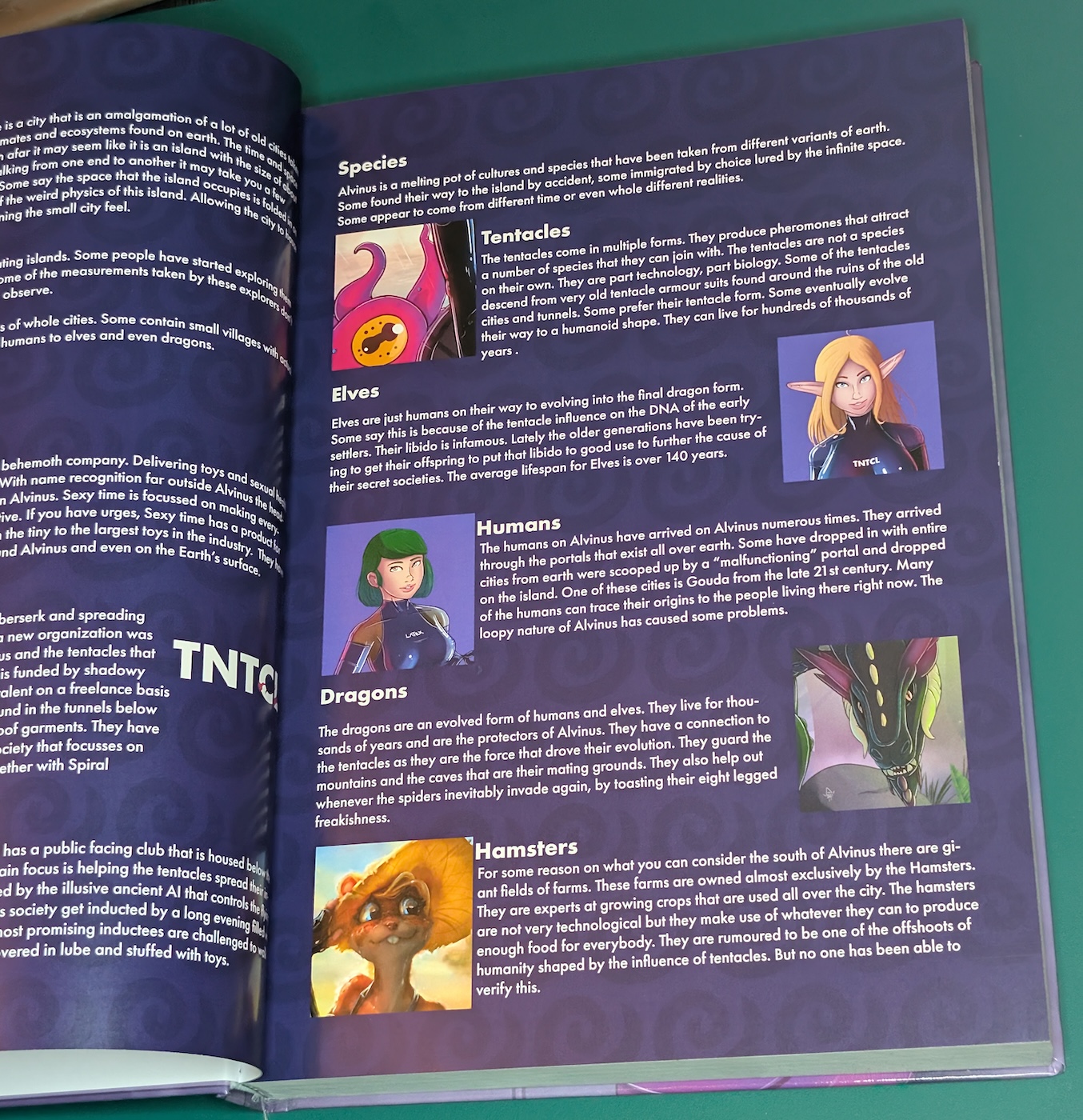 In this fourth art book we explore Alvinus a little more in depth. A place where the walls between realities are very thin. You will find glimpses into the different phases of reality. Some of the inhabitants of the floating island can observe these glimpses as they are happening. To some outside of the island they come in the form of dreams(or are they nightmares?) like in the case of the author.